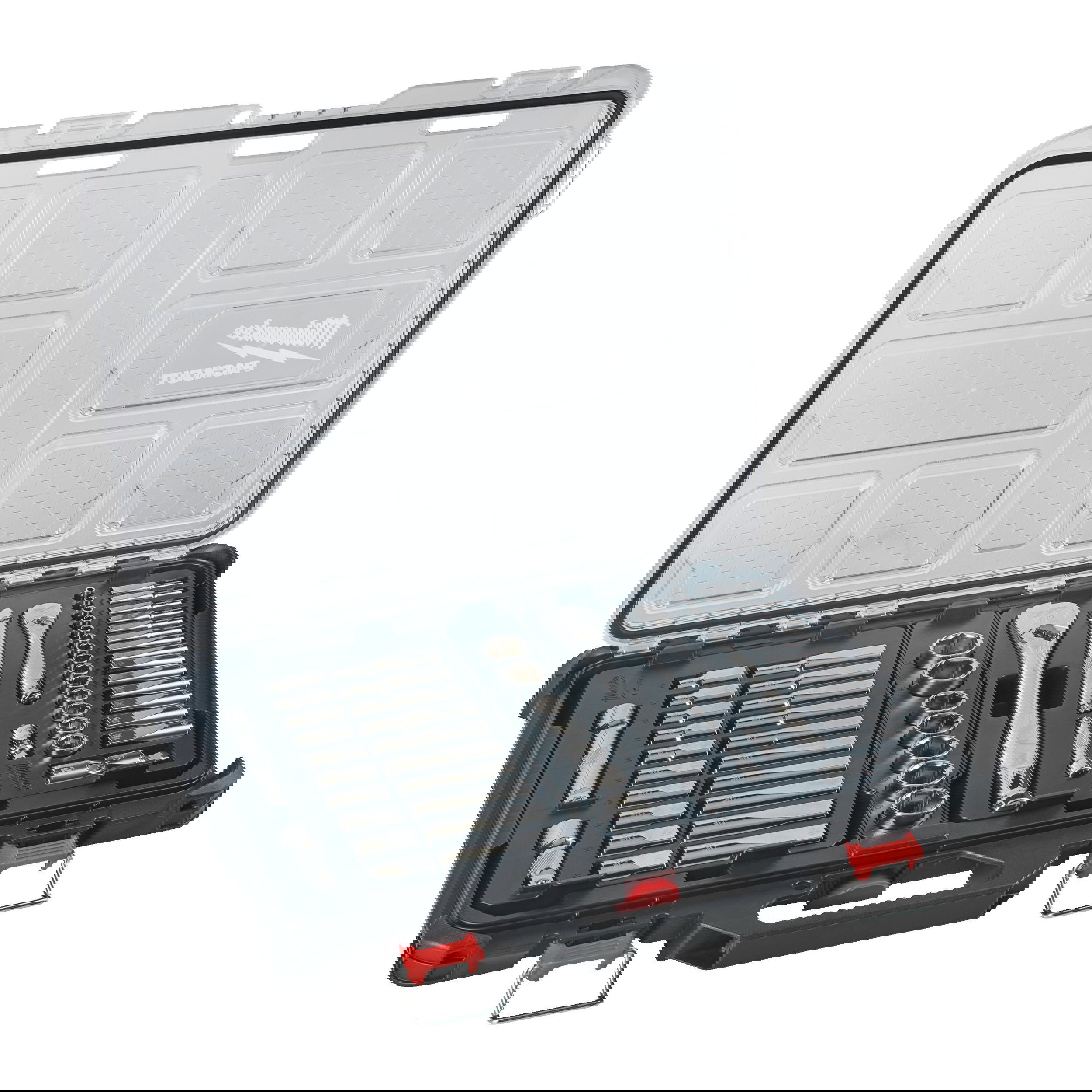 Milwaukee 1/4" + 1/2"-os racsnis dugókulcs készlet PACKOUT™ rendszerezőben, metrikus, 63 darabos