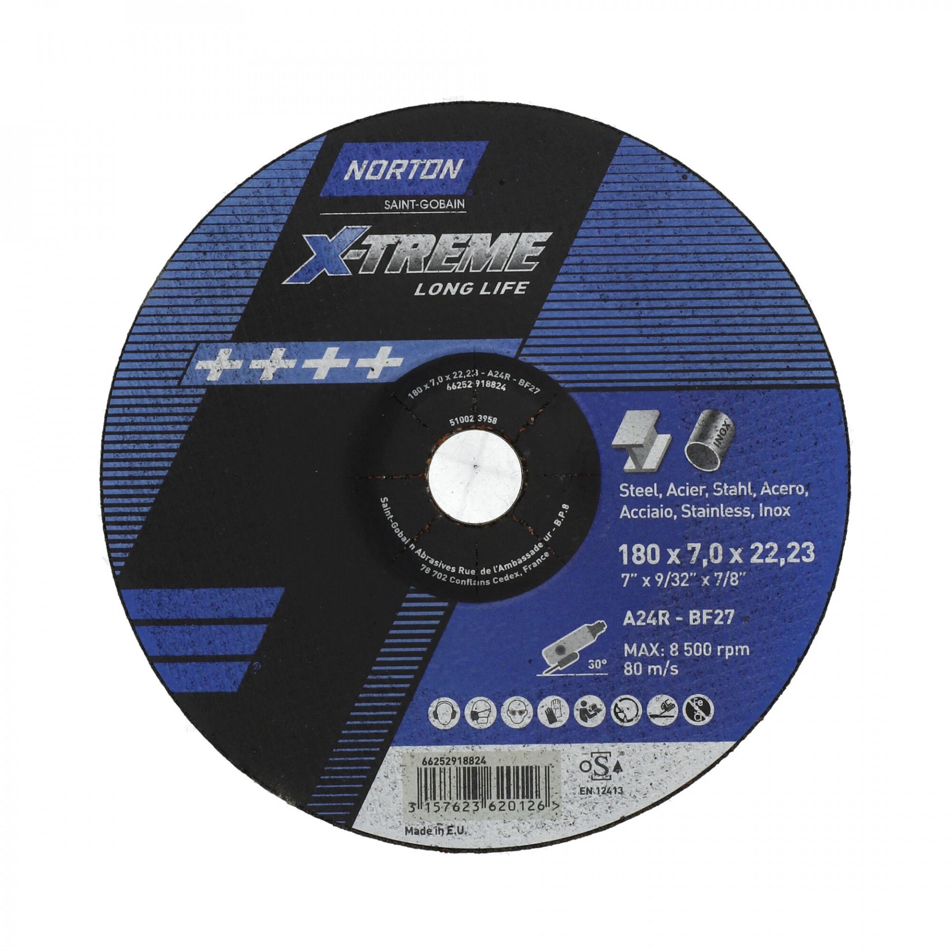 Norton X-Treme Life fém-inox tisztítókorong 180x7,0x22,23mm A24R, 10 db/csomag