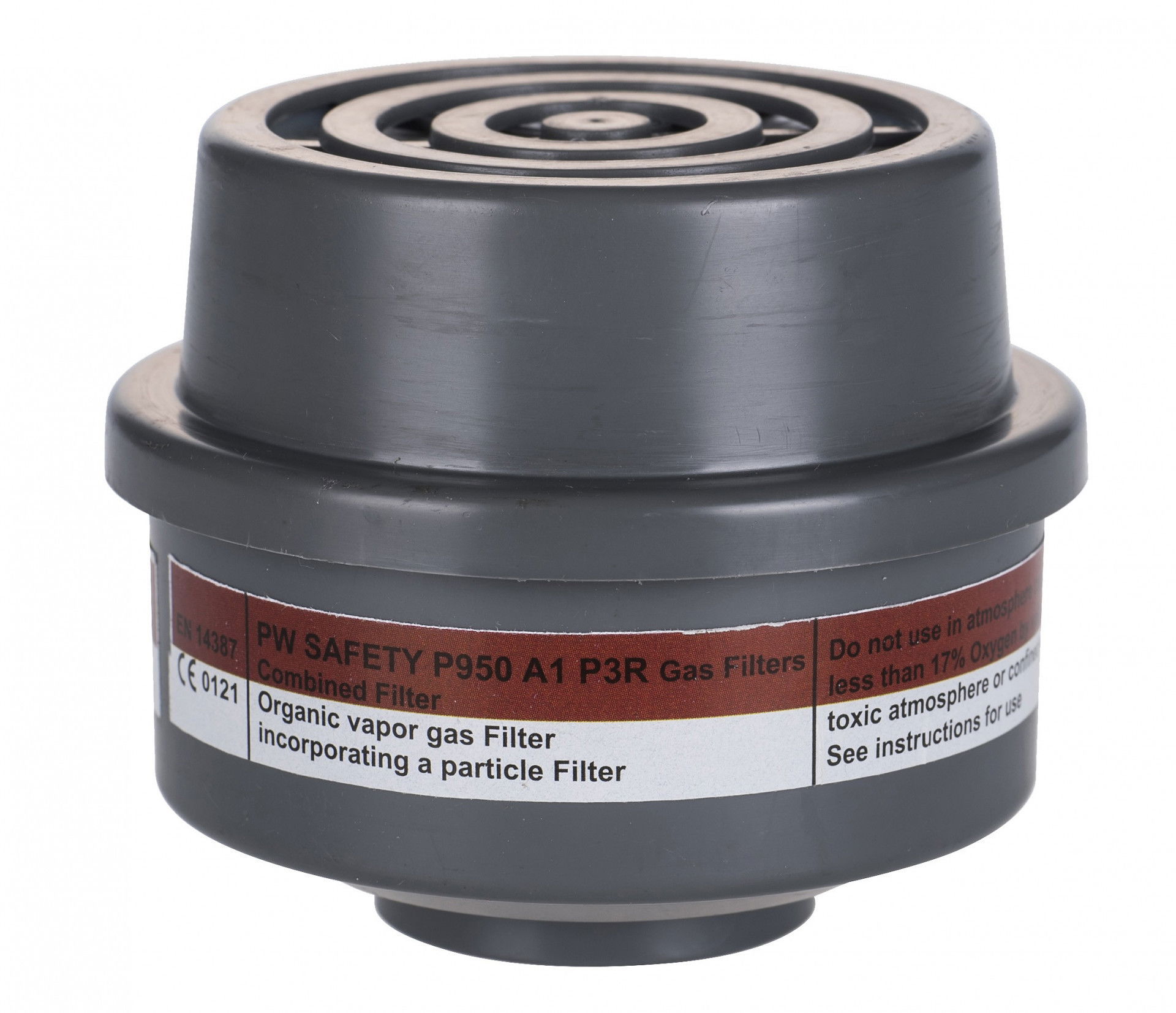 A1P3 típusú kombinált szűrő, amely véd káros anyagok, oldószerek, mérgező részecskék és mikroorganizmusok ellen.